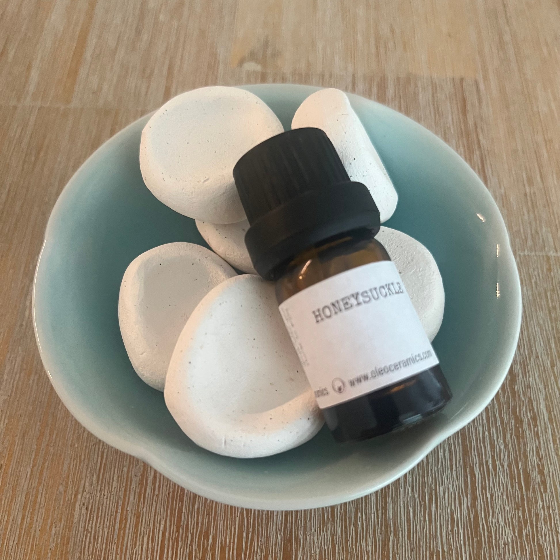 Kit comes with 6 stones and choice of lemongrass (soothing & calming) or honeysuckle (mood enhancement) aroma oil
